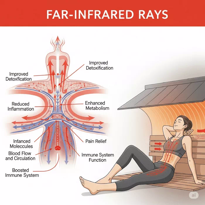 우리 몸은 3~5㎛ 파장대의 분자진동수를 가진 유기화합물로 인체의 65%~80%가 수분으로 구성되어 이루어져 있어 비슷한 파장 대를 가진 원적외선에 잘 공명이 되며 피부 속 4~5㎝까지 심층으로 침투하게 되는데 이는 일반 열보다 80배나 깊숙이 스며든 것이며, 세포를 1분에 약 2,000번 이상 미세하게 흔들어주는 진동을 통하여 세포를 활성화 시켜 생명활동을 더욱 왕성하게 해주는 것입니다.
